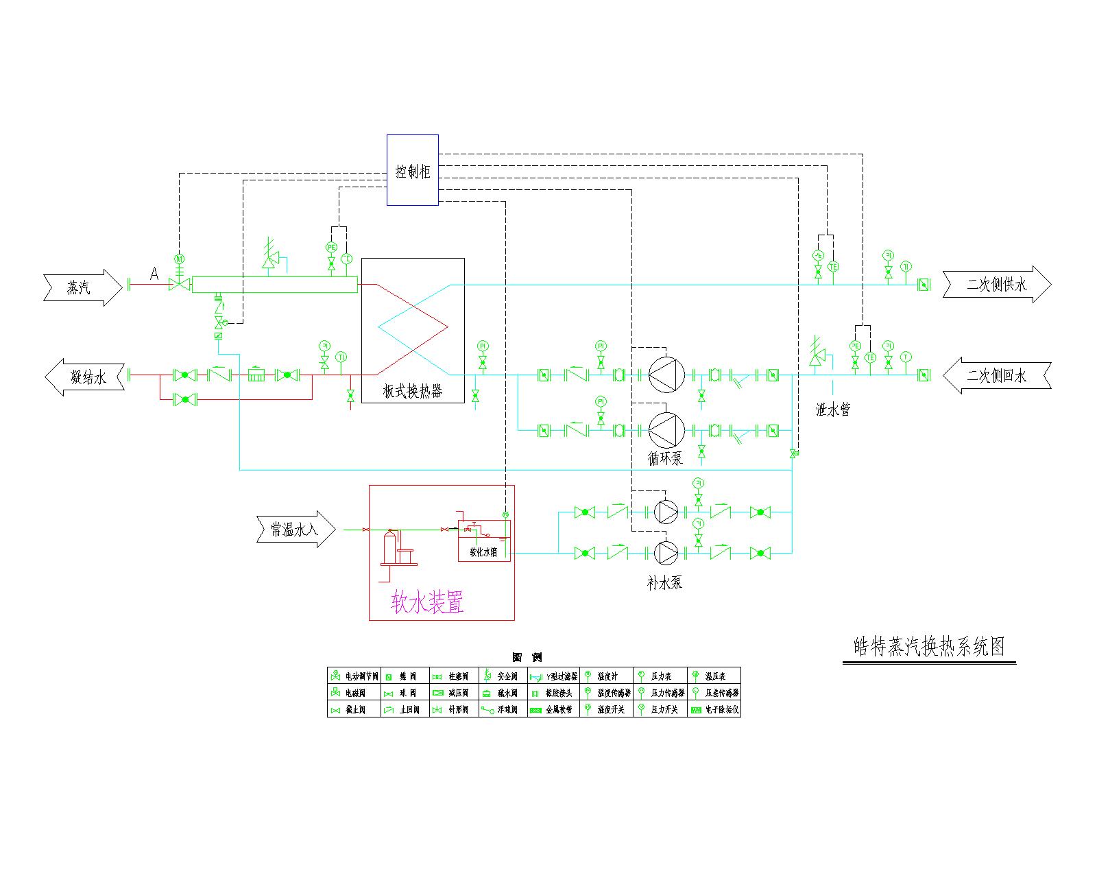 6、一閥多用:(減壓閥和溫控閥功能)A點電動調節閥,在控制B點壓力優先的同時控制B點溫度,在設備故障等非常規的運行時關閉電動閥,保證設備安全。